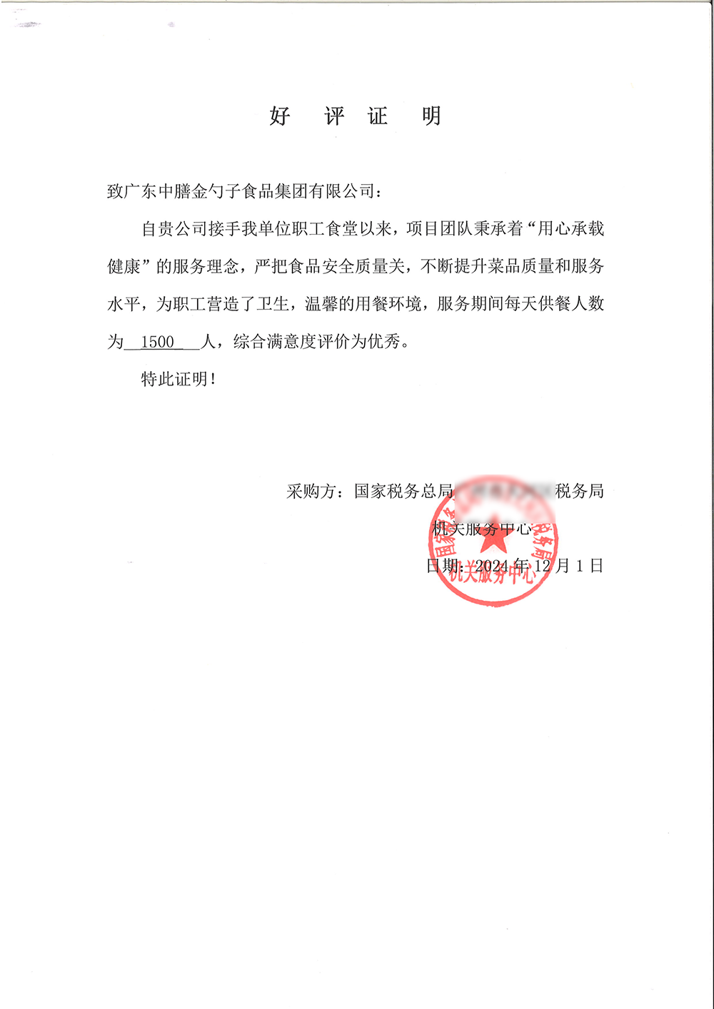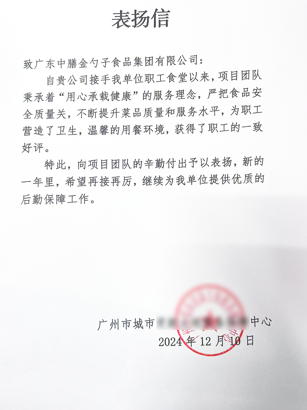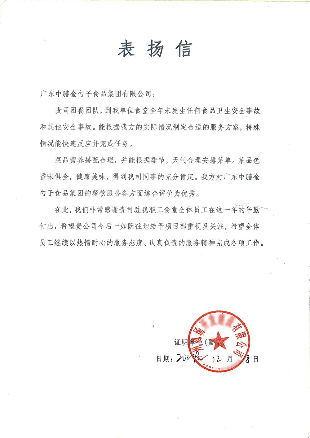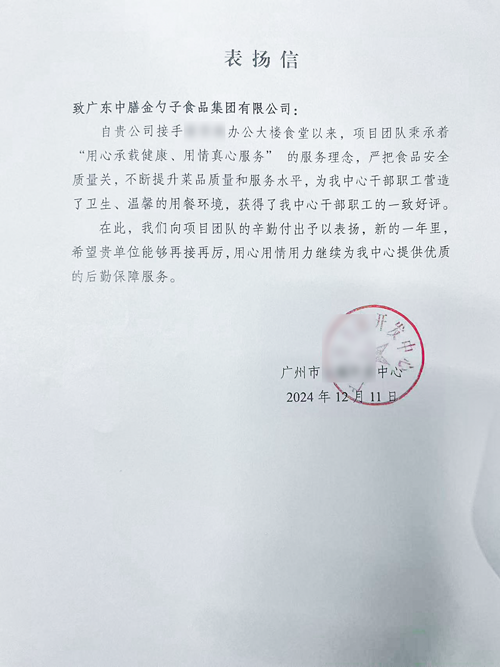 荣获2024年度十佳员工满意度企业食堂