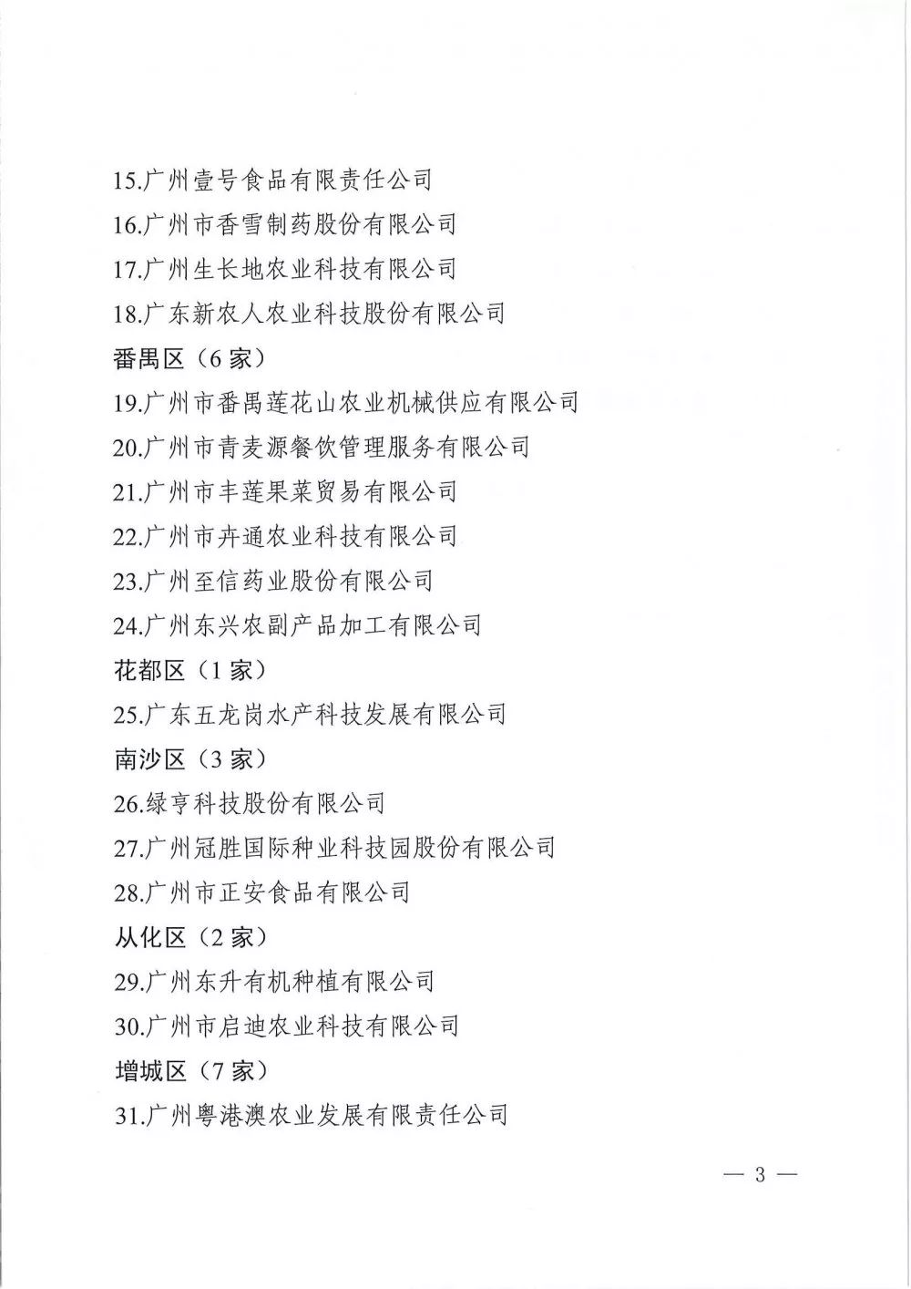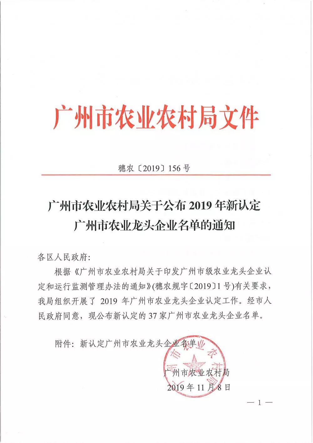 据了解,农业农村局根据《广州市级农业龙头企业认定和运行监测管理办法》,组织开展2019年广州市农业龙头企业认定工作,旨在加强对龙头企业的运行监测,促进广州市高端高质高新都市型现代农业发展。该办法规定,市级农业龙头企业,是指在企业规模、带动力、竞争力等方面达到规定标准,并经市政府确认的企业。