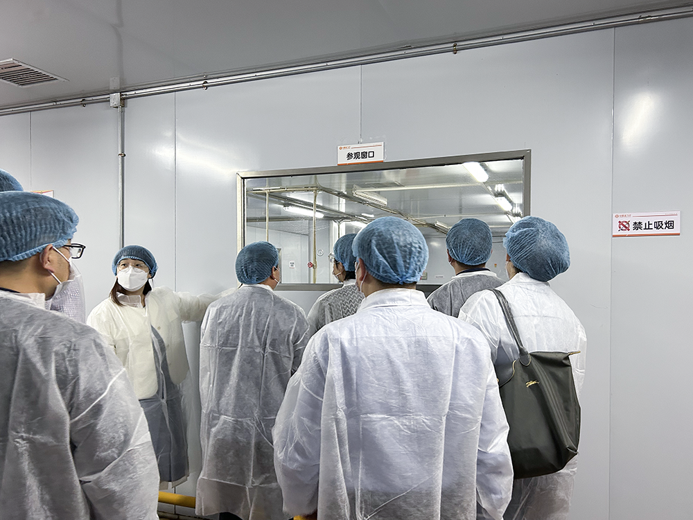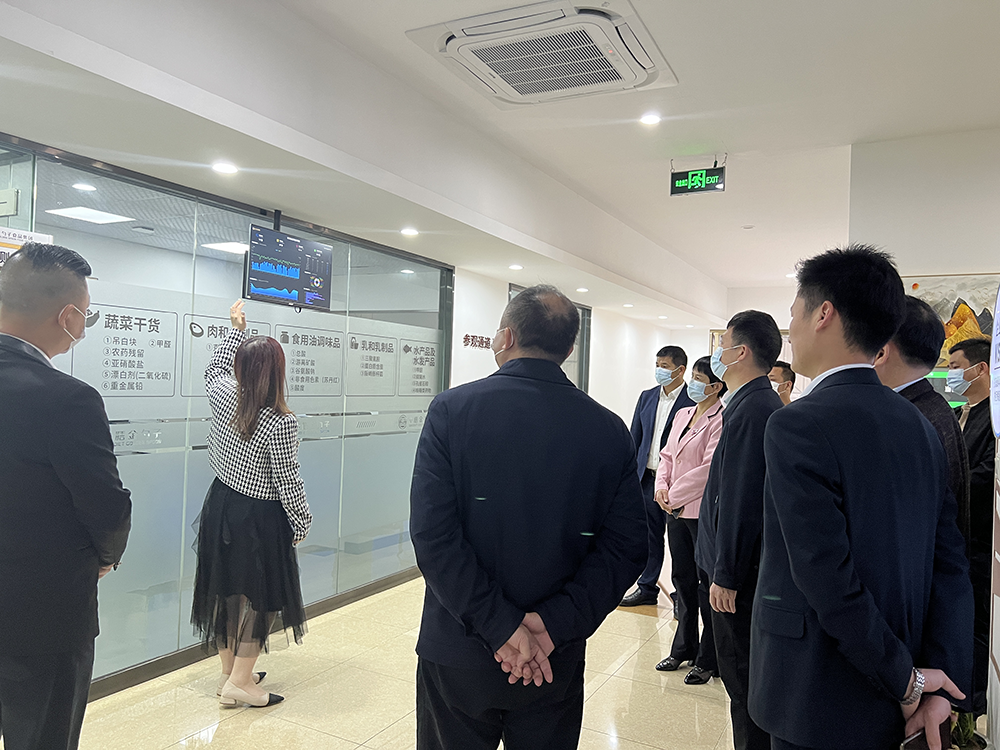 考察团一行人先后走访了我司预制菜项目加工中心、食安检测中心等。