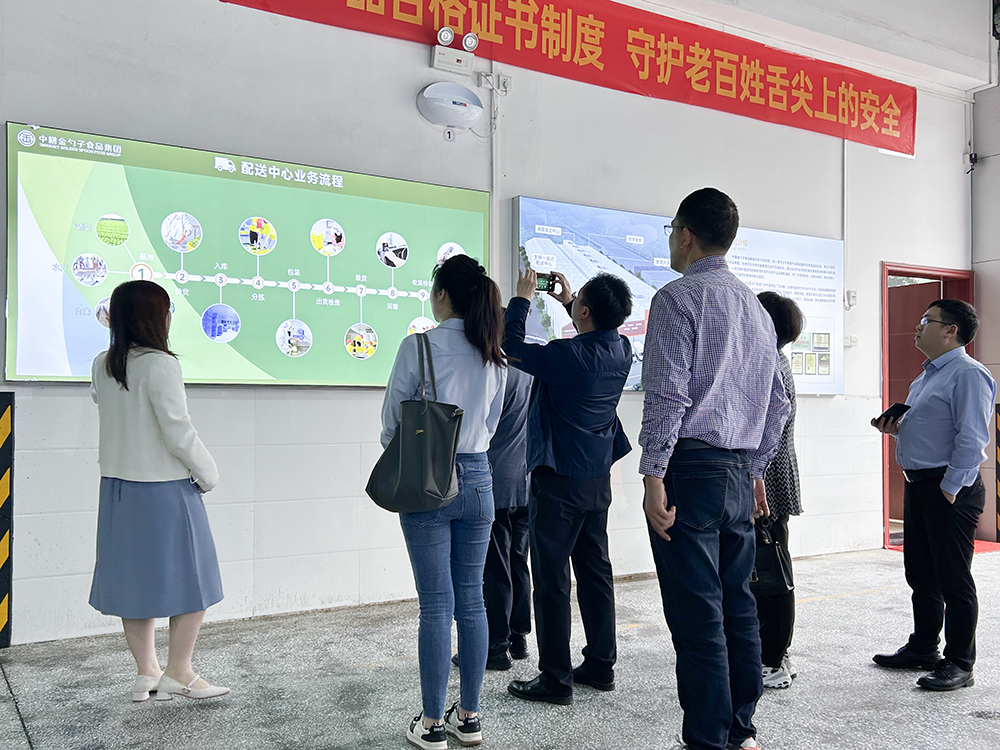 在我司相关人员的带领下,考察组参观了集团配送大厅、食材加工中心、食品检测中心、集团总部办公区域等,对金勺子食品集团业务发展情况有初步的了解。