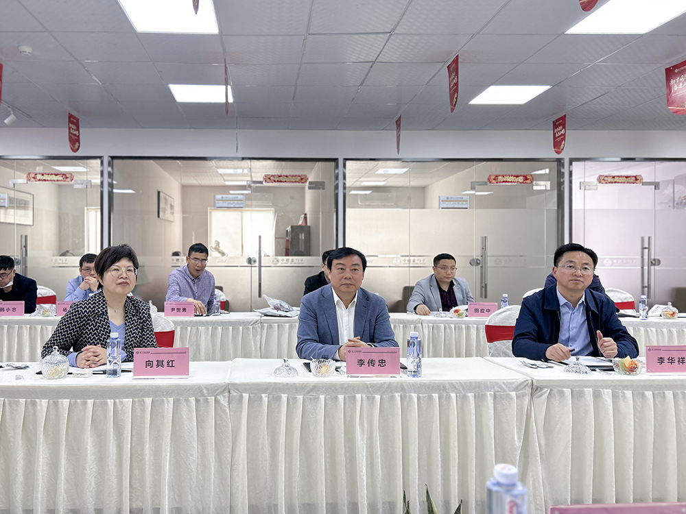 参观后开展座谈会。会上我们向梁主席汇报了在建项目情况、集团未来的发展方向以及各项目的推行情况等。随后双方就如何推动企业经济高质量发展等问题进行深入的探讨。