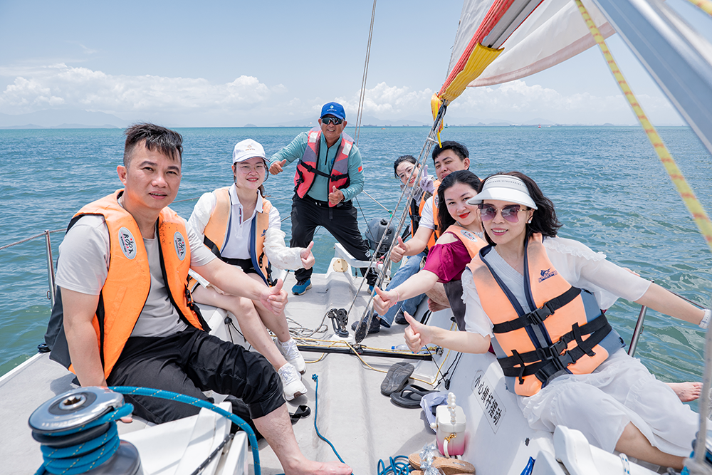 5月26日下午,一辆旅游大巴载着欢声笑语前往惠州巽寮湾,经近3小时车程到达目的地,开始了为期两天一夜的团建之旅。 当晚,在巽寮湾花园别墅进行烧烤轰趴活动。金勺子家人们团结协作,伴着习习的海风,升起独一份的人间烟火,开启不一样的味蕾享受。夜幕逐渐降临,喝酒、吃肉、K歌......他们忘却了昔日烦恼,欢呼、呐喊、嬉闹......共同沉浸在美好的夜晚里。 27日上午,集体享用早餐后,开展团建活动。通过《沙滩拔河》《沙滩龙舟竞赛》等一个个有趣的拓展互动,提高了团结协作的默契,提升了集体荣誉感,让一颗颗滚烫的心连接起来,让金勺子团队更有信念和力量。 27日下午,全体出发前往码头准备坐帆船出海。码头上空蓝天白云,海风阵阵,远眺万里无边,美不胜收,大家纷纷合影留念,记录下心动的时刻。 坐在帆船上观光,又是另一番体验。有的家人们脚踏浪花朵朵,体验速度与激情,有人眺望远方,欣赏蓝天、白云、波澜大海。此时的海面上波光粼粼,与天上的朵朵白云相映生辉,偶尔风声、呐喊声、欢笑声......在耳畔响起,让人心旷神怡、倍感舒适,金勺子的家人们忍不住感慨,真不虚此行。 欢乐时光总是过得尤其快,无论多么不舍,金勺子家人们历经短暂的相聚后又要奔赴战场,但我们会带着满满的回忆、勇气与激情拥抱未来,齐心协力书写新的篇章。