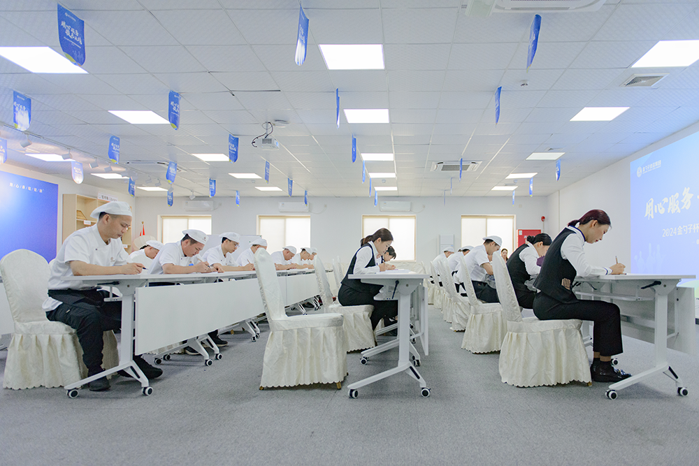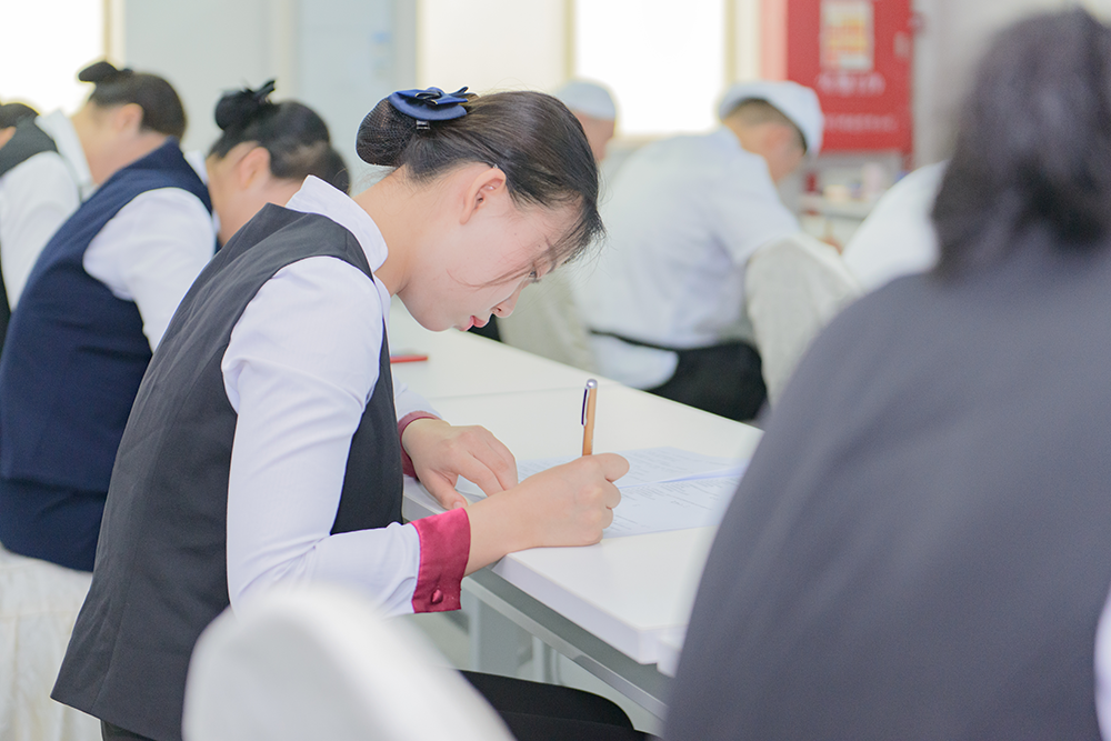 领导致辞后,餐饮服务知识竞赛笔试正式开始。参赛者们沉着冷静,认真思考,展现了丰富的专业知识。这是一场对知识储备和应变能力的考验,每一位参赛者都用自己扎实的专业知识为自己赢得了宝贵的分数。
