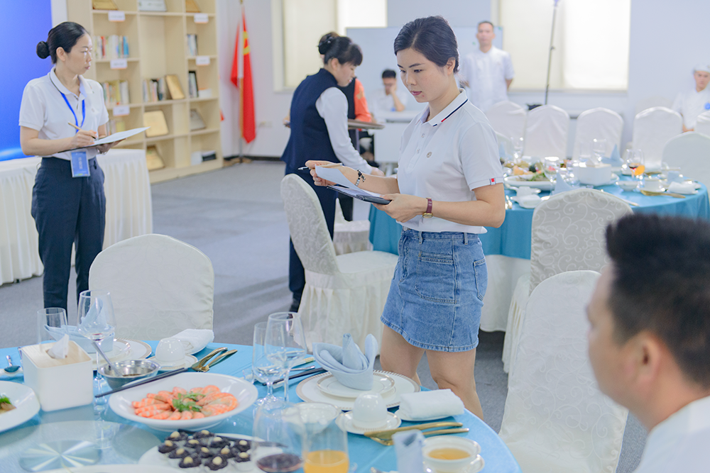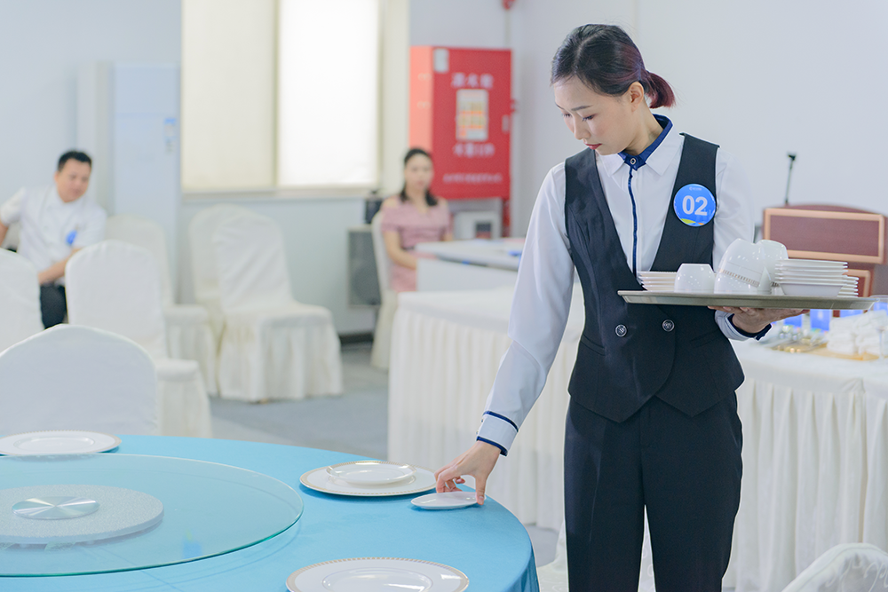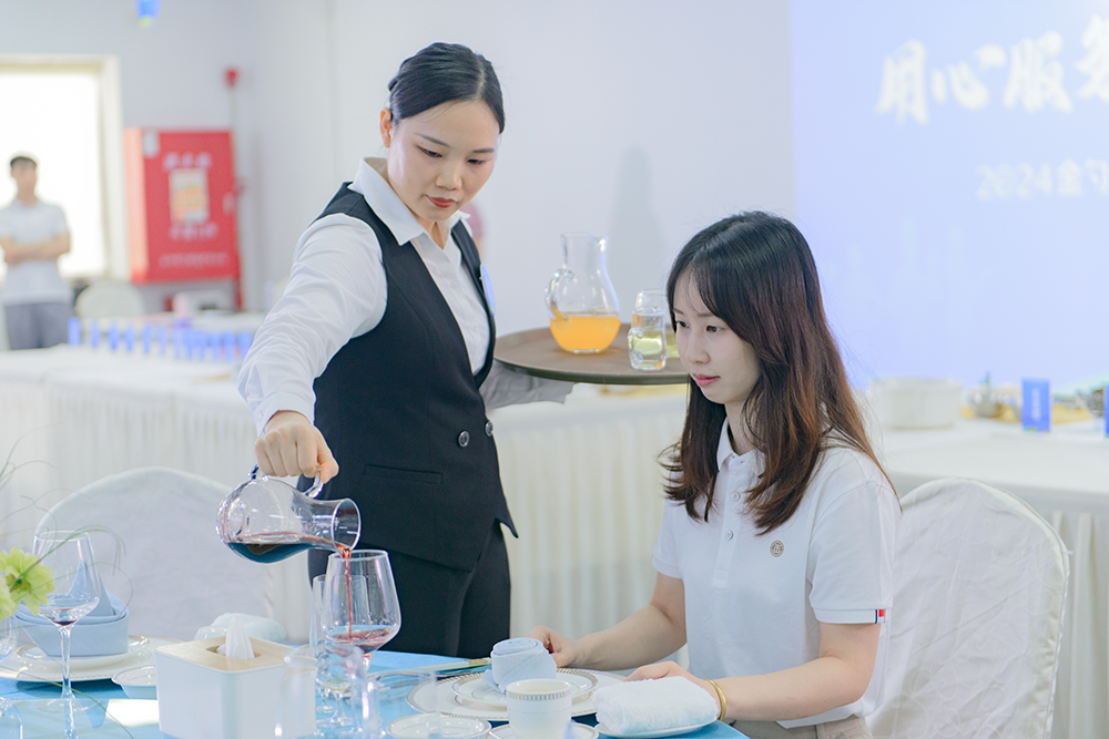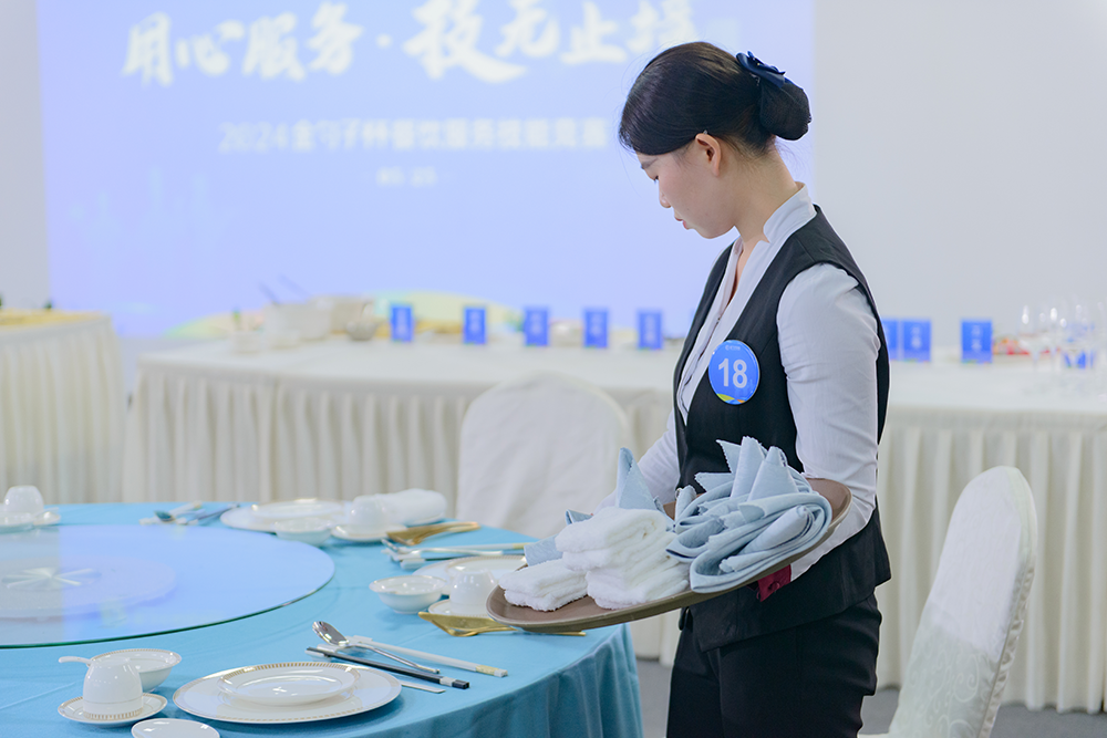 在最后的包房接待服务技能竞赛中,参赛者们用热情的微笑,专业的礼仪,细致的服务赢得了评委们的赞许。这是一场对服务态度和服务技巧的双重考验,每一位参赛者都展现了自己最佳的状态。