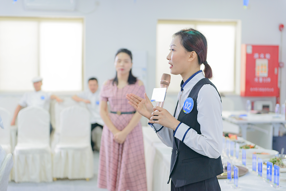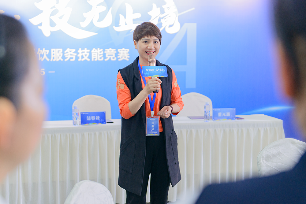 上午,活动在一场充满激情和鼓励的领导致辞中拉开序幕。金勺子食品集团副总裁徐焕华在致辞中强调了服务业的重要性,以及对本次竞赛的期待和祝愿。他提到,服务业是人与人沟通的桥梁,是传递温暖和关爱的平台。希望每一位参赛者都能以用心服务为宗旨,追求技无止境的专业高度。
