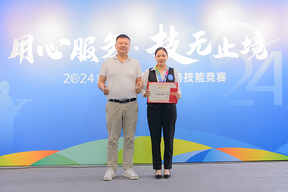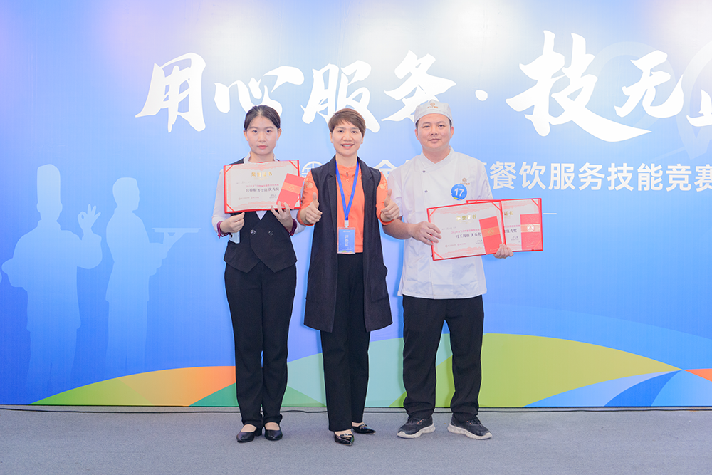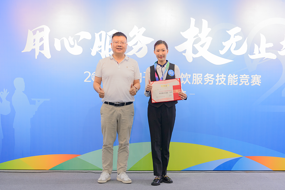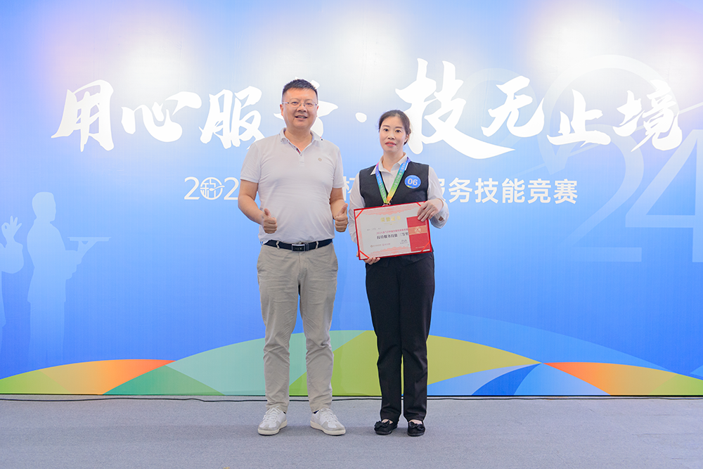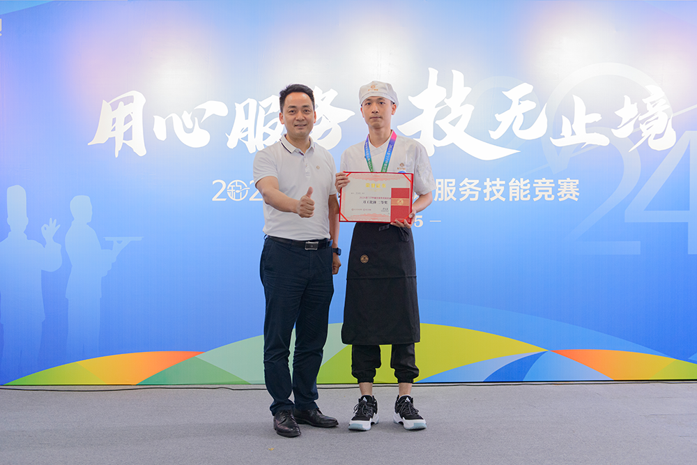 用心服务,技无止境!巅峰对决,各显神通!最后,2024金勺子杯餐饮服务技能竞赛在紧张而激动的颁奖仪式中圆满结束?;窠闭呙鞘峙跞僖?,脸上洋溢着自信和喜悦。这是对他们的肯定,也是对他们未来的鼓励。
