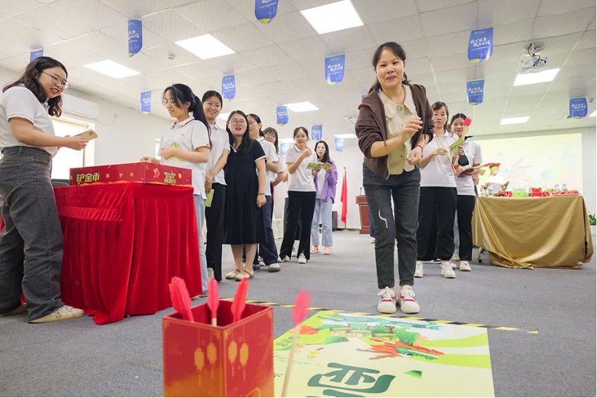 活动现场,投壶、铲金币、蒙眼敲锣、真人版拼图、摸石头过河等游戏吸引了众多员工的热情参与,让大家体验了古代投壶的神秘趣味,也感受到了新时代游戏与传统文化的碰撞。