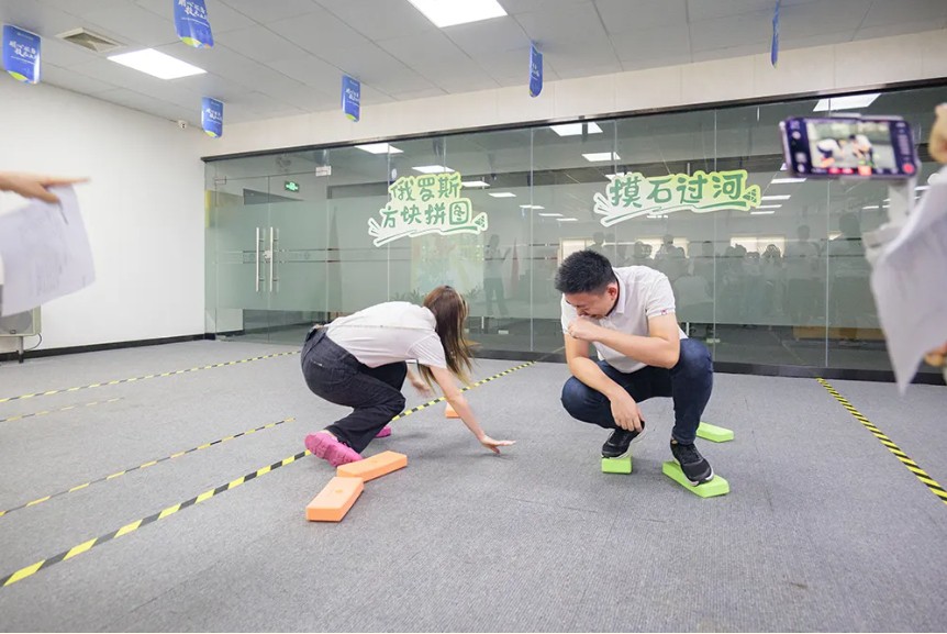 《摸石头过河》游戏则是一场趣味横生的竞赛。员工们共同跨越障碍,到达终点,感受到了团队协作的重要性。